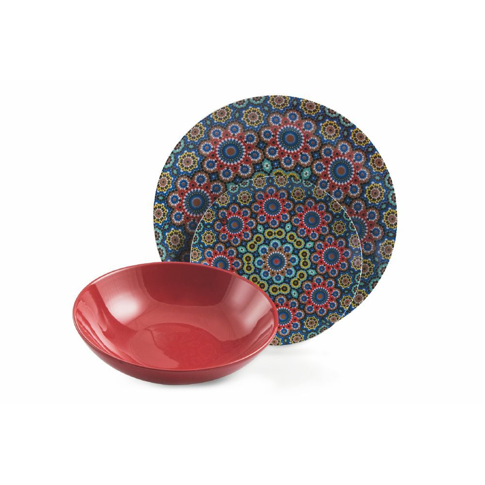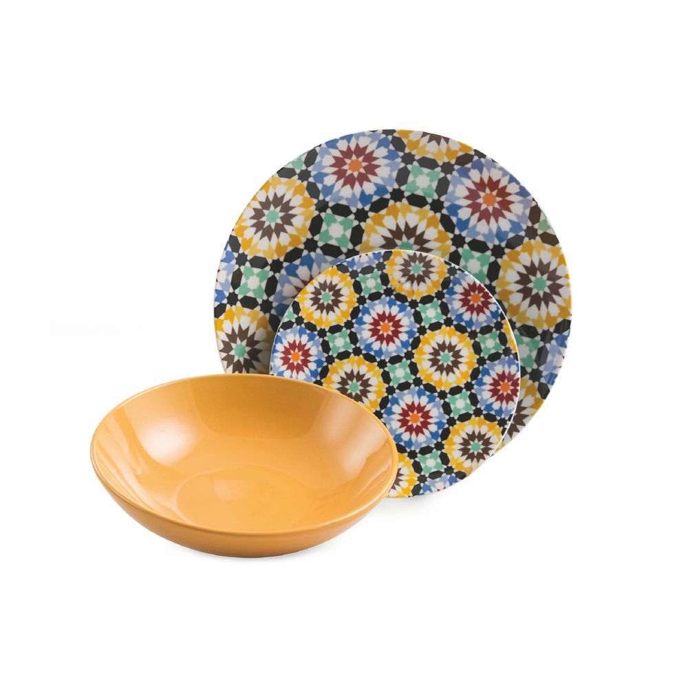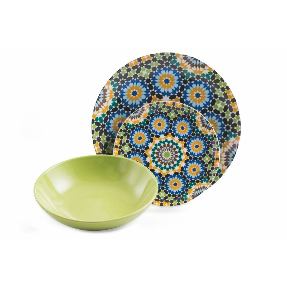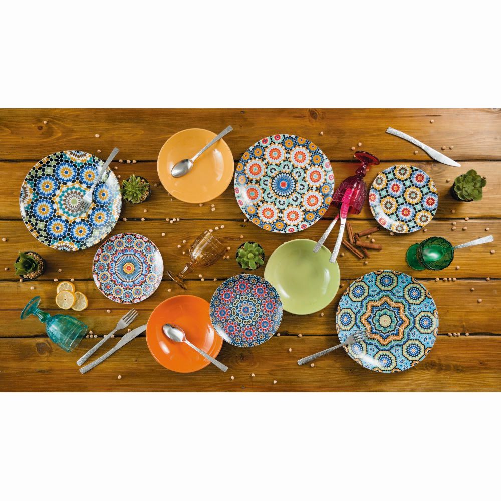 Със сервиза за хранене Marrakech всеки елемент на масата се превръща в плочка, която хармонира с всички останали елементи. Резултатът е невероятна мозайка, от която лъха екзотиката на мароканското изкуство и култура. Закачливата комбинация от форми и цветове ще “събудят” всяка подредба на масата и ще я превърнат в артистично изкушение. Потопете се в пъстротата на арабския свят и пропътувайте през континентите за повече вдъдхновение!