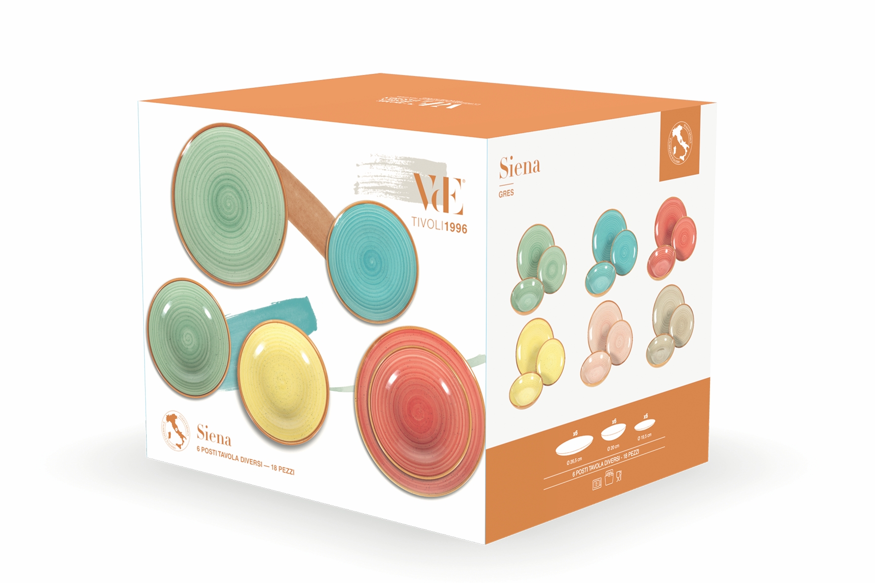 Със своите топли цветове и естествени нюанси сервиз за хранене Siena, ви отвежда сред малките селца на Тоскана - там където златните поля докосват небето и ни показват целия спектър на меките нюанси на природата.